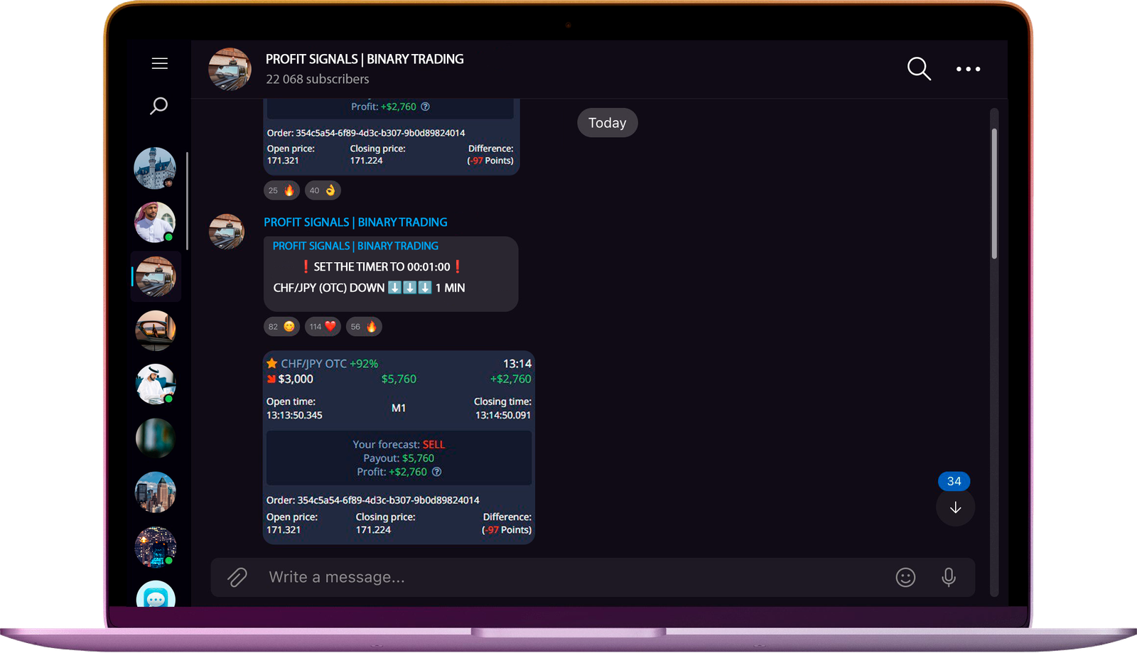 Don't worry, in a few days you will be able to understand everything and start making your first money! You will be able to trade with my community of 14,000 members. Receive signals, enter trades and take guaranteed profits!